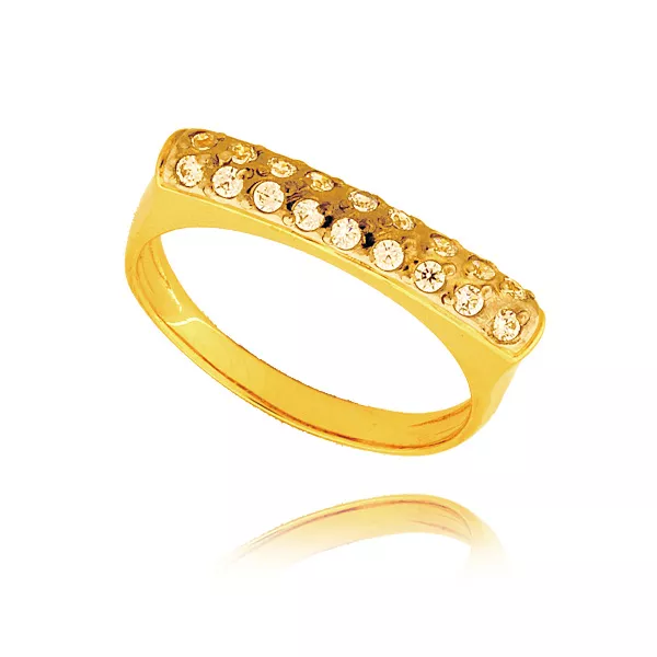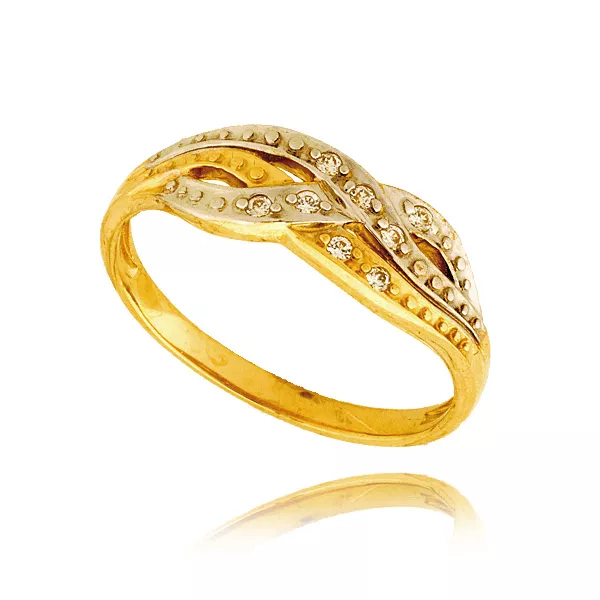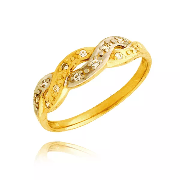 Złoty pierścionek podkreślający subtelny blask kamieni.