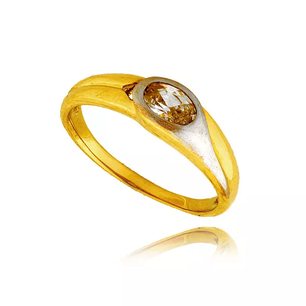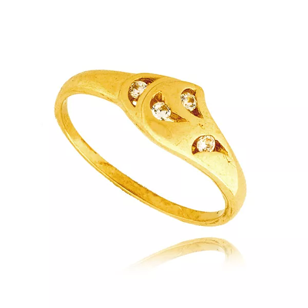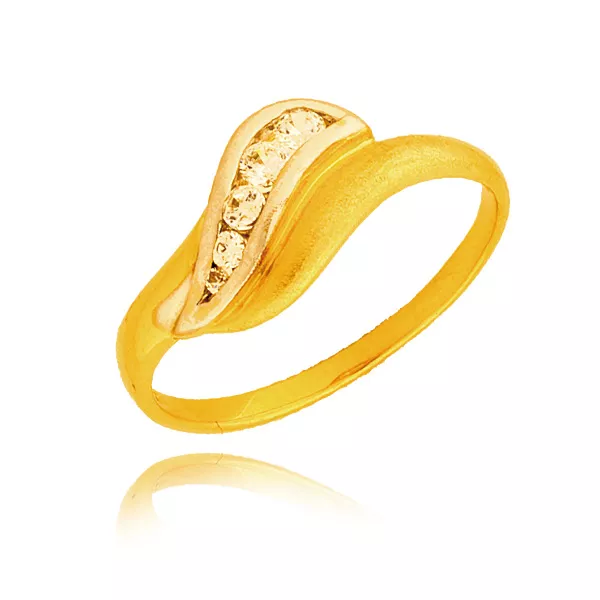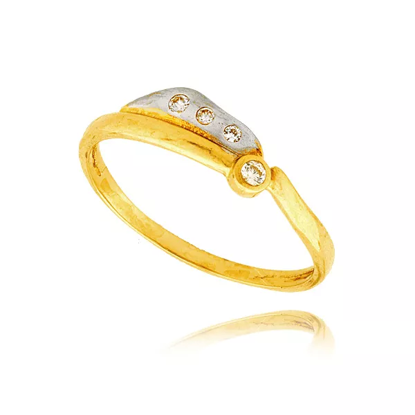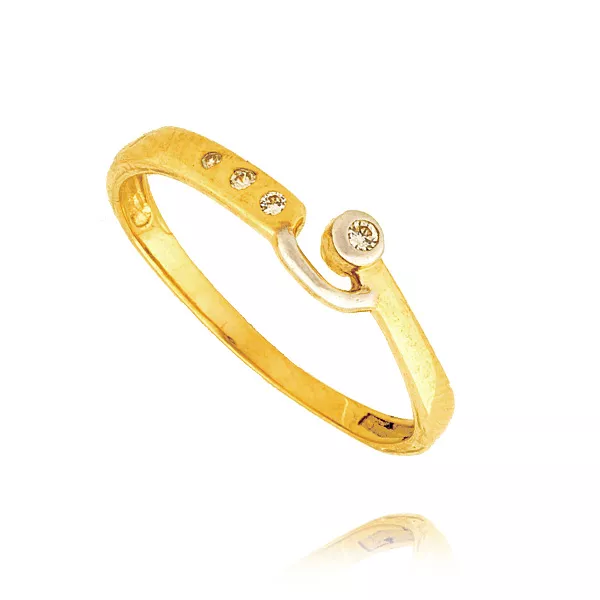 Złoty pierścionek podkreślający subtelny blask kamieni.