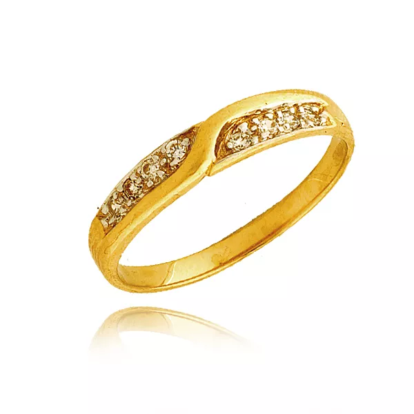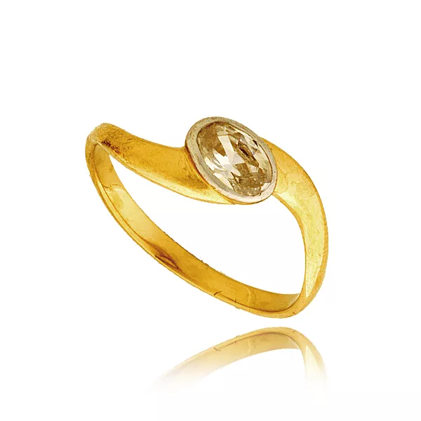 Złoty pierścionek podkreślający subtelny blask kamieni.