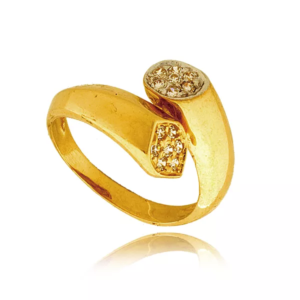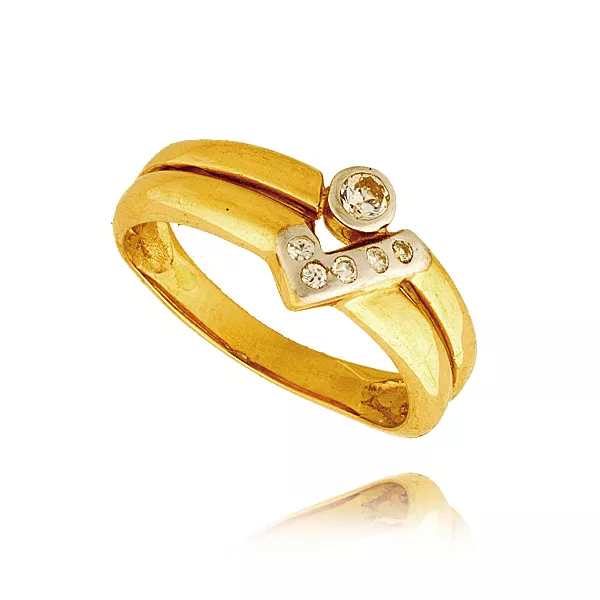 Złoty pierścionek podkreślający subtelny blask kamieni.