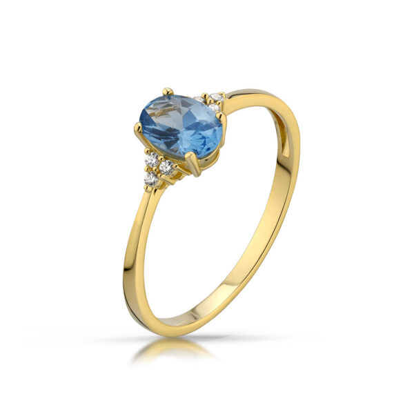 Złoty pierścionek podkreślający subtelny blask kamieni.