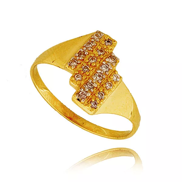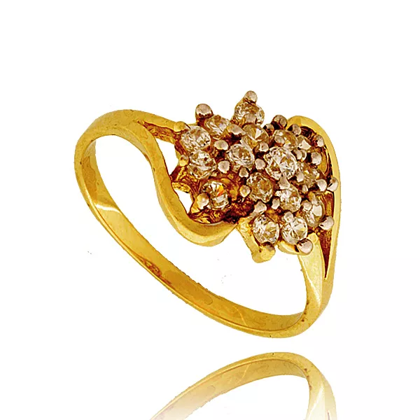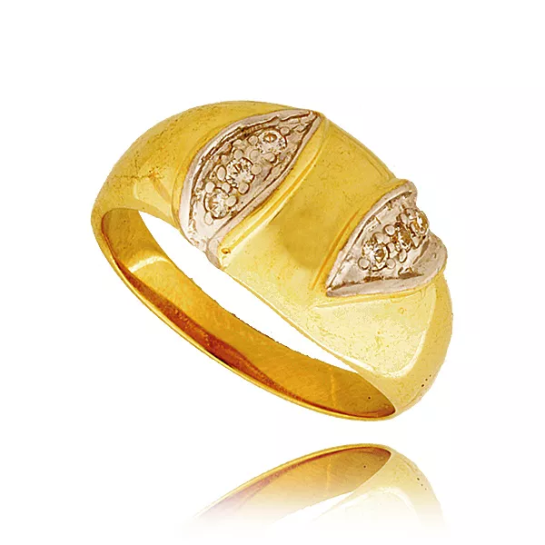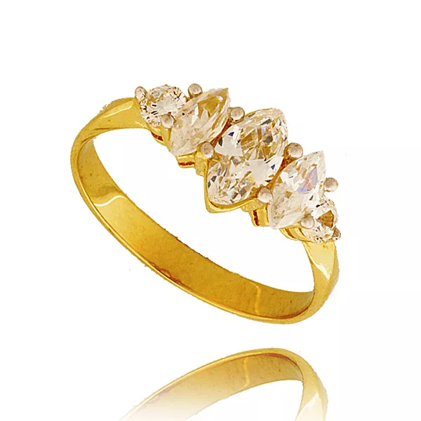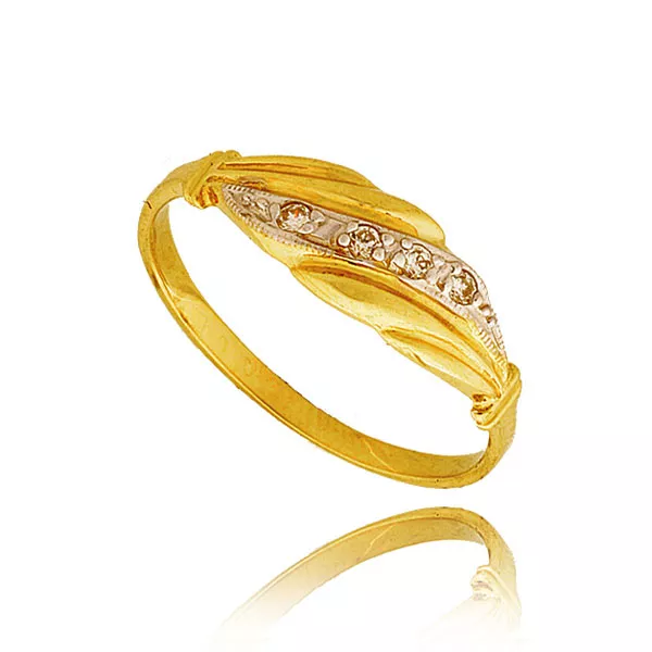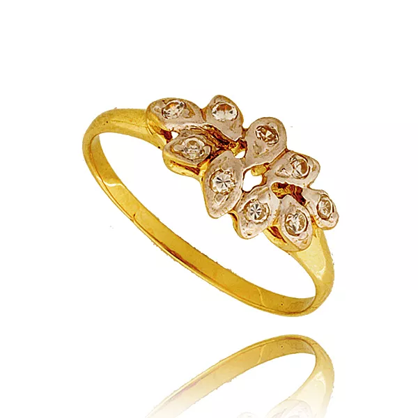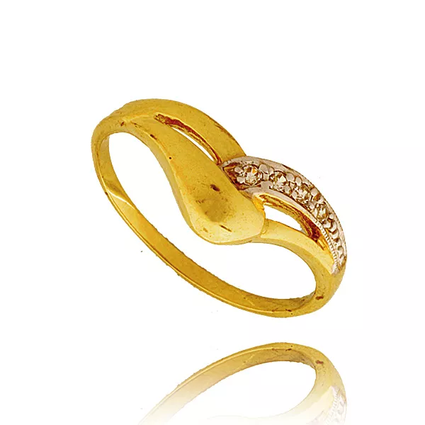 Złoty pierścionek podkreślający subtelny blask kamieni.