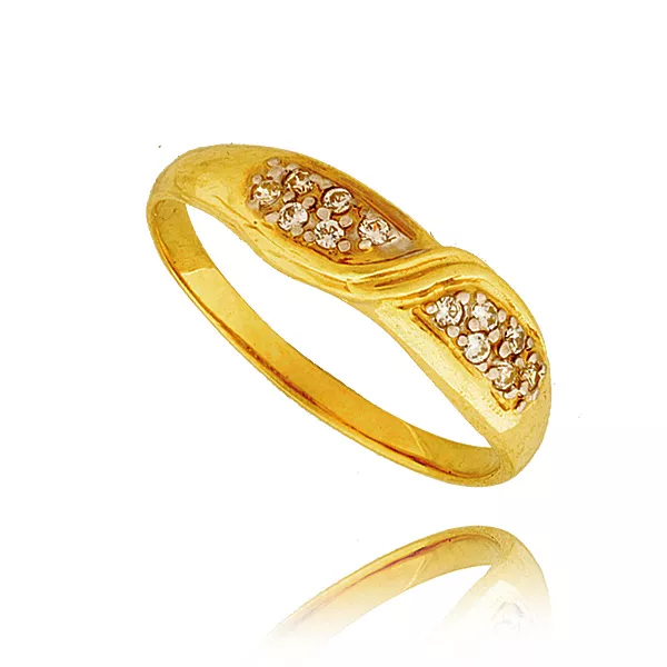 Złoty pierścionek podkreślający subtelny blask kamieni.